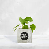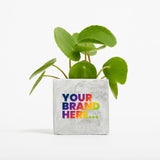 Modern and minimalist. This sustainable pot comes complete and planted with a small love heart plant ready to look good in any office or home. Marble concrete pot with detailed print to one face. Recyclable. Reusable.