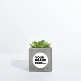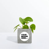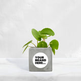 Modern and minimalist. This sustainable pot comes complete and planted with a small love heart plant ready to look good in any office or home. Grey concrete pot with detailed print to one face. Recyclable. Reusable.